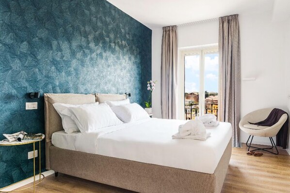 This property is absolutely beautiful, we had a small balcony and had an unspoiled view of the colosseum. The bed was large and very comfortable and the bathroom had very good facilities. Will definitely be returning and recommending to all friends and family for trips to Rome.