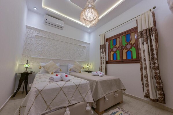 At Dar Mawati, you'll be just a 5-minute drive from Jemaa el-Fnaa and Avenue Mohamed VI. Free perks include WiFi and local cuisine breakfast daily between 7:30 AM and 11:00 AM. Also, Marrakech Plaza and Majorelle Garden are just a 5-minute drive away.